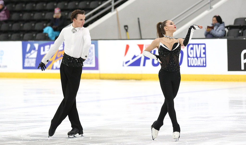 Jane Calhoun & Mark Zheltyshev earned a 58.61 for their dance to “Ice Ice Baby” by Vanilla Ice, “Black Coffee” by Heavy D & the Boyz, and “U Can’t Touch This” by MC Hammer. Elena Dostatni and Logan Giulietti-Schmitt coach the team in Colorado Springs, CO.